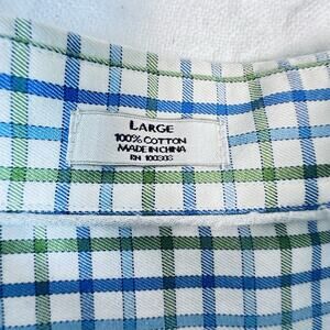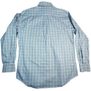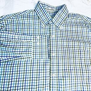 Peter Millar Long Sleeve Button Front Shirt L Blue White Check Plaid 100% Cotton