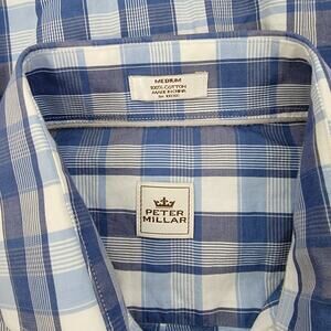 Peter Millar Long Sleeve Button Up Check Pattern Shirt Blue Size M
