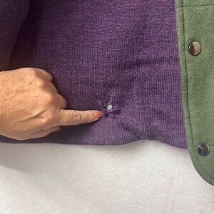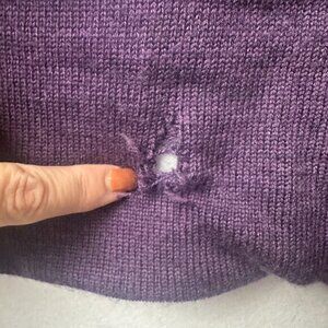Please see photos. There are 3 holes on the purple side of the vest that can be repaired.