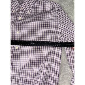 This Peter Millar men's shirt is a stylish addition to any wardrobe. The purple plaid pattern is perfect for any casual occasion, while the long sleeves offer added comfort. Made in a size M with a regular fit, this button-up shirt is sure to become a favorite. The brand is well known for its quality and style, making it a great choice for any fashion-conscious man. The color and pattern are trendy and fashionable, making it a versatile piece that can be dressed up or down.