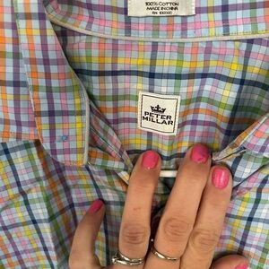 Peter Millar Medium 100% Cotton Casual Button Down Plaid Multicolor Shirt