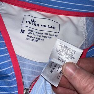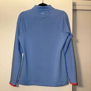 Peter Millar Medium Blue White Stripe Quarter Zip Long Sleeve Golf Shirt Logo