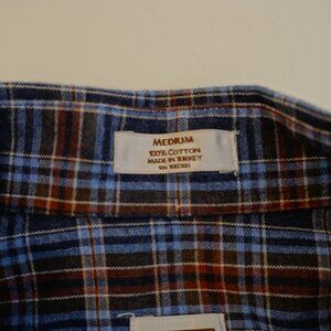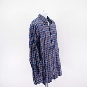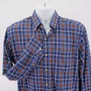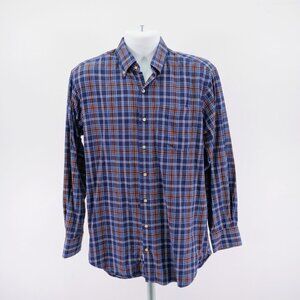 Peter Millar Medium Cotton Plaid Brown Blue Pocket Front Button Down