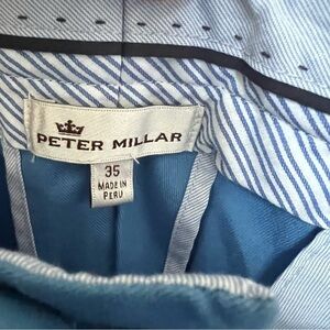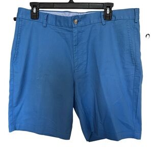 Peter Millar Men Soft Twill Chino Shorts Flat Front Midrise Pockets Blue Size 35