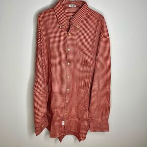 Peter Millar Men’s 100% Cotton Checks Button Long Sleeve Shirt Red Logo XLarge