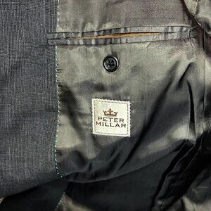 Peter Millar Mens 46R Sport Coat Gray Black Glen Plaid 100% Wool Two Button
