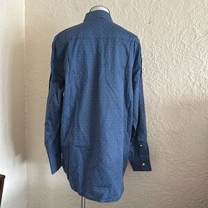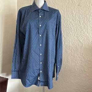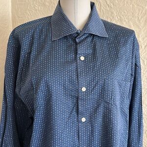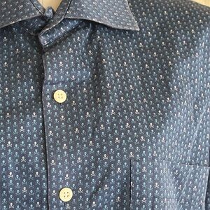 Peter Millar Men's Blue Skull and Crossbones Patterned Button Up Shirt XL