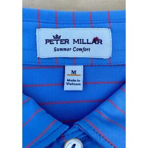 Peter Millar Men's Blue W/ Red Stripes Collared Short Sleeve Polo Shirt, Size M
