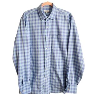 Peter Millar Mens Button Down Blue Plaid Sz Large