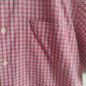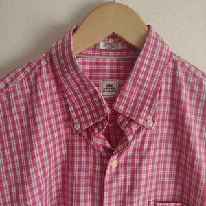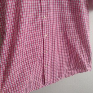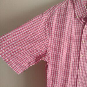 Peter Millar Men's Button Down Plaid Shirt L Red White Short Sleeve 100% Cotton