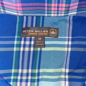 Peter Millar Mens Button Down Summer Comfort Plaid Blue Pink Performance Shirt