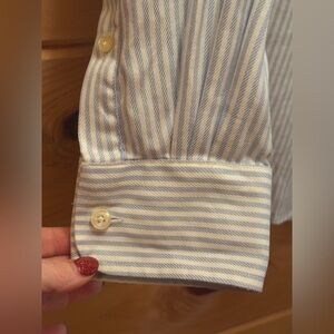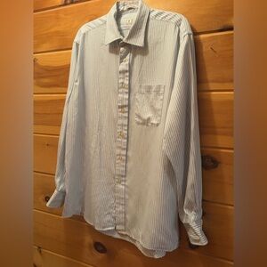 Peter Millar Men’s Button Up Shirt. Size 17 L Blue And White Stripes.