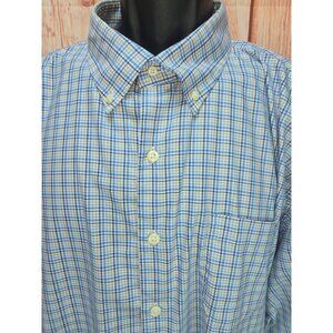 Peter Millar Mens Button-Down Shirt XXL Cotton Blend Blue-Tan Plaid