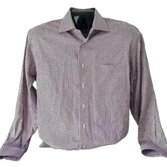Peter Millar Men's Classic-Fit Long Sleeve Plaid Dress Shirt Pink Blue Plaid LARGE