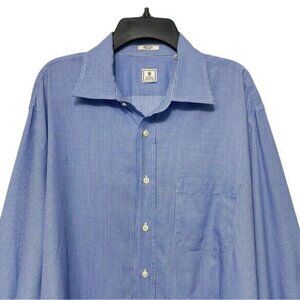 Peter Millar Mens Cotton Long Sleeve Button-Down Shirt in Blue Size 15.5 R