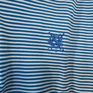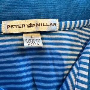 Peter Millar Mens Country Club Golf Casual Polo Shirt Blue & White Striped Large