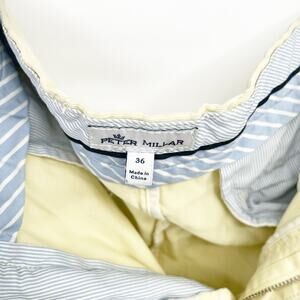 Peter Millar Mens Crown Crafted Bedford Cotton Blend Classic Shorts in Stone Light Yellow. Size 36.