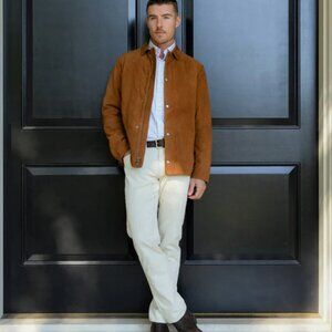 Peter Millar Men's Crown Suede Quilted Coat Jacket Whiskey Brown MF24Z08 $1295