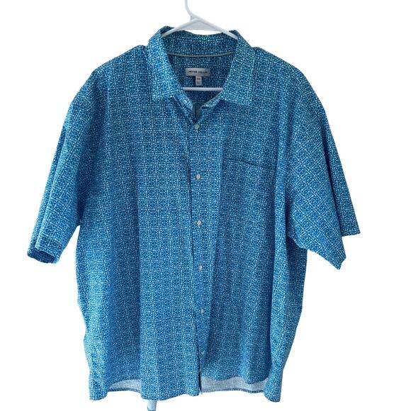 Peter Millar Men's Fish Bones Print Blue Short Sleeve Shirt XXL