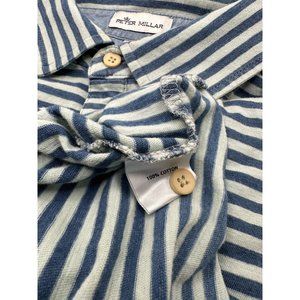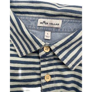 Peter Millar Men's Front Pocket 100% Cotton Short Sleeve Blue Stripes Golf PoloExcellent Condition, no holes or stains