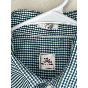 Peter Millar Men's Gingham Blue Green Button Down Long Sleeve Large