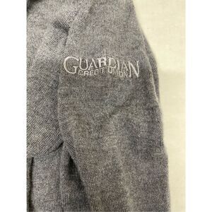 Peter Millar Mens Grey Long Sleeve 1/4 Zip Pullover Sweater Size L Small red spot and Guardian credit union logo on sleeve