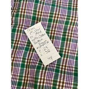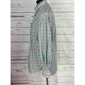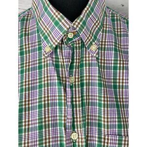 Peter Millar Mens Green Purple Plaid Button-Up Shirt Medium 100% Cotton Long Sle