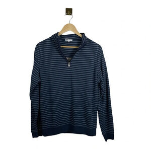 Peter Millar Men’s Halifax Striped Quarter Zip Pullover in Navy/Blue Size M