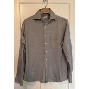 Peter Millar Men's L Button-Up Dress Shirt Gray/Blue + print 100% Cotton EUC