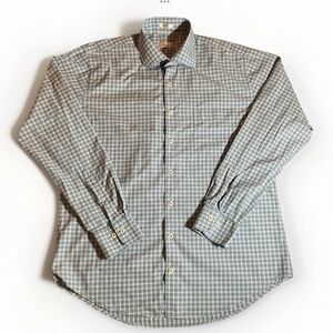 Peter Millar Mens L Plaid Dress Shirt Blue Tan Check 100% Cotton Button Down top