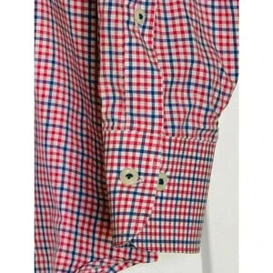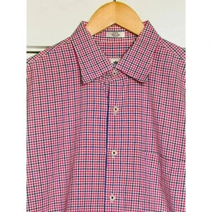 Peter Millar Mens Large 100% Cotton Button Down Gingham Red White Blue
