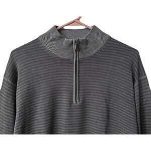 Peter Millar Mens Large 100% Merino Wool 1/4 Zip Gray Stripes Sweater Made Italy