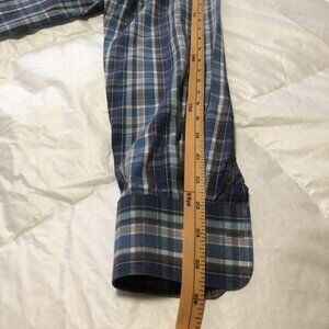 Peter Millar Mens Large Blue Plaid Long Sleeve Button Up Shirt Casual orWork.