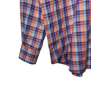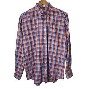 Peter Millar Mens Size Large Button Down Dress Shirt Plaid Orange Blue White