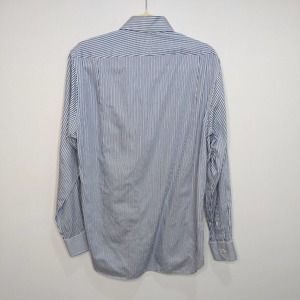 Peter Millar Mens Large Cotton Blue White Striped Button Dress Shirt Long Sleeve