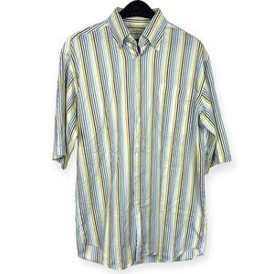 Peter Millar Men's Large Cotton Striped Short Sleeve Shirt Blue Yellow Red White