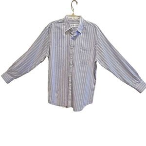 Peter Millar Mens Large Long Sleeve Button Up Shirt Striped Pocket 100% Cotton