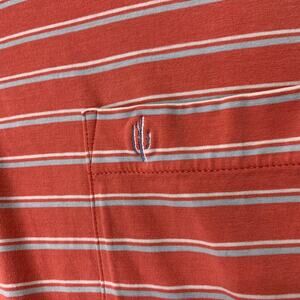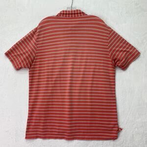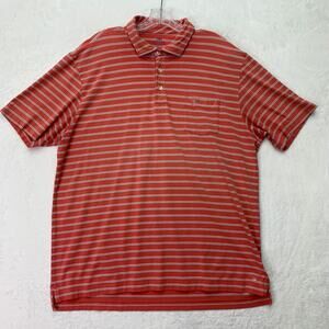 Peter Millar Mens Large Orange Blue White Striped Short Sleeve Polo Shirt Golf