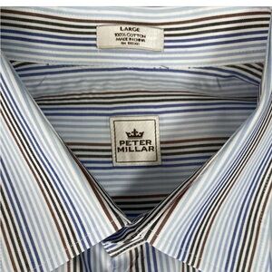 Peter Millar Men's Long Sleeve Button Down Shirt Size Large Cotton Stripe