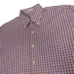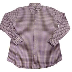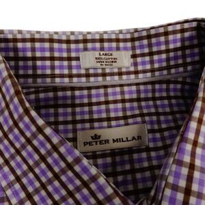 Peter Millar Mens Long Sleeve Button Up Purple Plaid Shirt Large