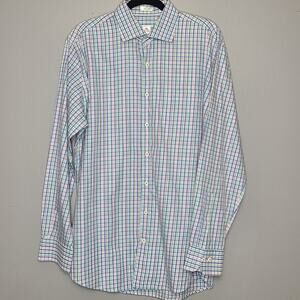 Peter Millar Men's Long Sleeve Button Up Shirt Size L Pink Blue Green Plaid