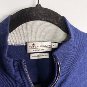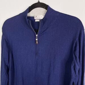 Peter Millar Mens M Navy Blue Crown Soft Cotton Silk 1/4 Zip Pullover Sweater