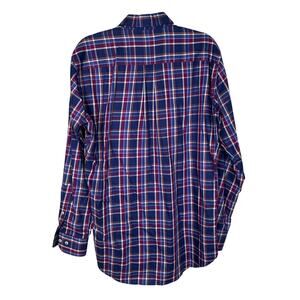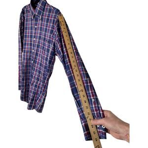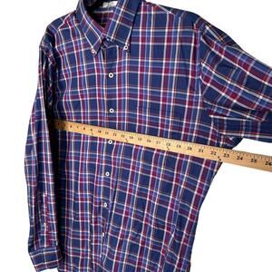 Peter Millar Mens M Plaid Long Sleeve Button Up Dress Shirt 100% Cotton Navy Red