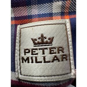 Peter Millar Men's M Plaid Long Sleeve Button Up Shirt 100% Cotton Navy Burgundy