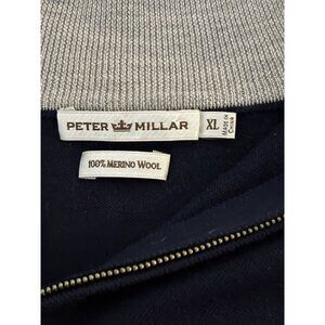 Excellent condition. Peter Millar Men's Navy Blue Quarter Zip Merino Wool Vest Size XL. Length 28in, pit to pit 22in. Very minimal peeling.