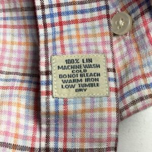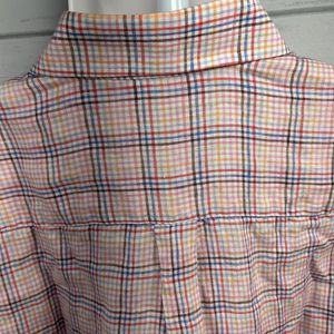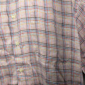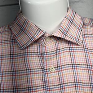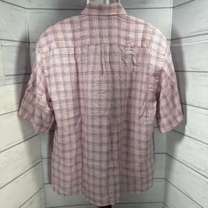 Peter Millar Men's Plaid Button Front Shirt Short Sleeve Linen Pink Size Large