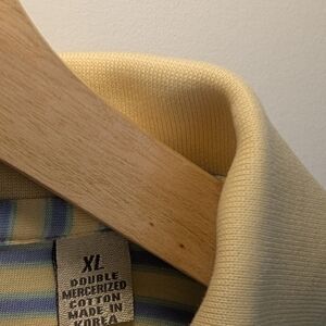 This Peter Millar Men's Polo in Extra Large size is perfect for the Quail Hollow Country Club golf performance. It features a collared neckline with a button closure, making it suitable for travel, activewear, and casual occasions. The yellow polo shirt with striped pattern and embroidered logo accents is made of cotton fabric, offering easy care and a regular fit. Ideal for the summer, fall, and spring seasons, this classic and sporty polo is a stylish addition to any man's wardrobe.