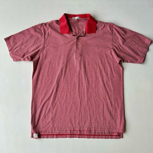 Peter Millar Mens Polo Shirt Red Striped Short Sleeve Golf Rugby Casual Size XL