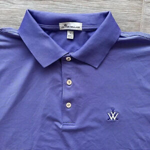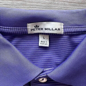 Peter Millar Men's Purple Polyester Pinstripe Short Sleeves Polo Shirt Large