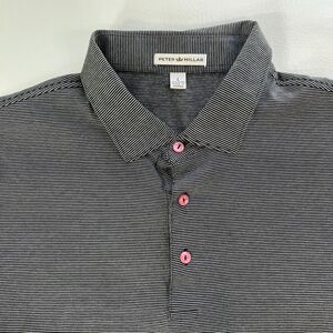 Peter Millar Mens Shirt Large Black White Stripe Pullover Polo Shirt Pink Button